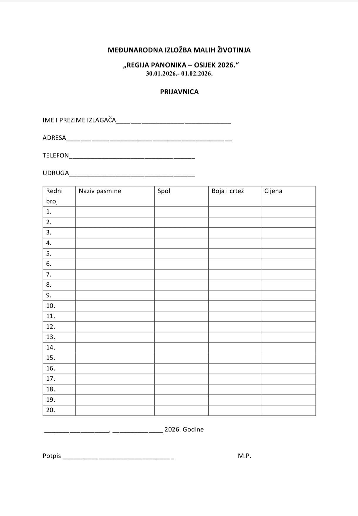 Međunarodna izložba malih životinja "REGIJA PANONIKA - OSIJEK 2026."